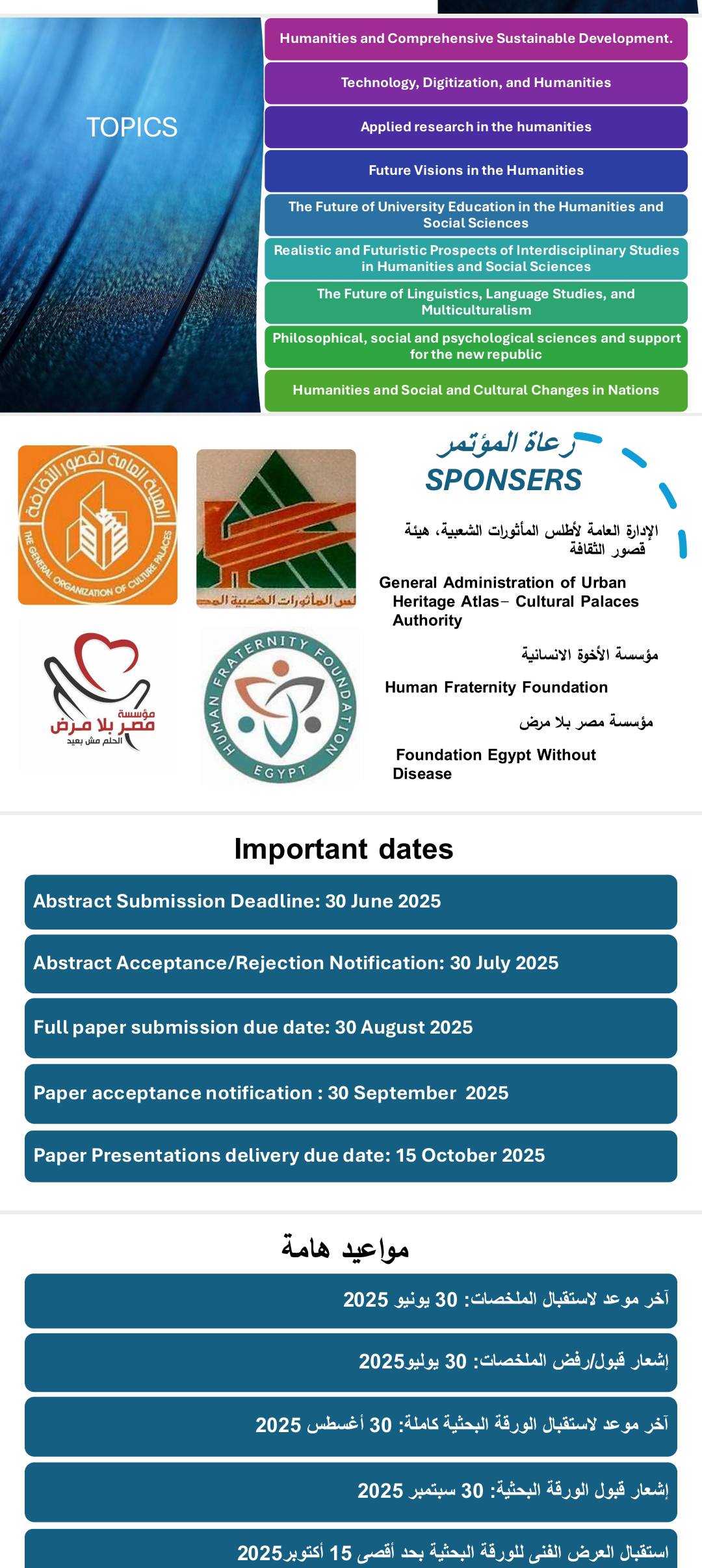 المؤتمر الدولي الرابع لكلية الآداب جامعة حلوان في الفترة من 15-- 16 نوفمبر 2025 بعنوان: (مستقبل العلوم الإنسانية والاجتماعية: تحديات وفرص)