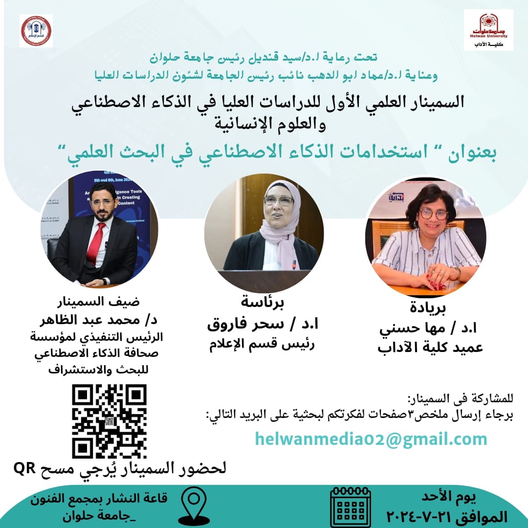 السيمنار العلمي الأول لطلاب الدراسات العليا تحت عُنوان : ( استخدامات الذكاء الاصطناعي في البحث العلمي )
