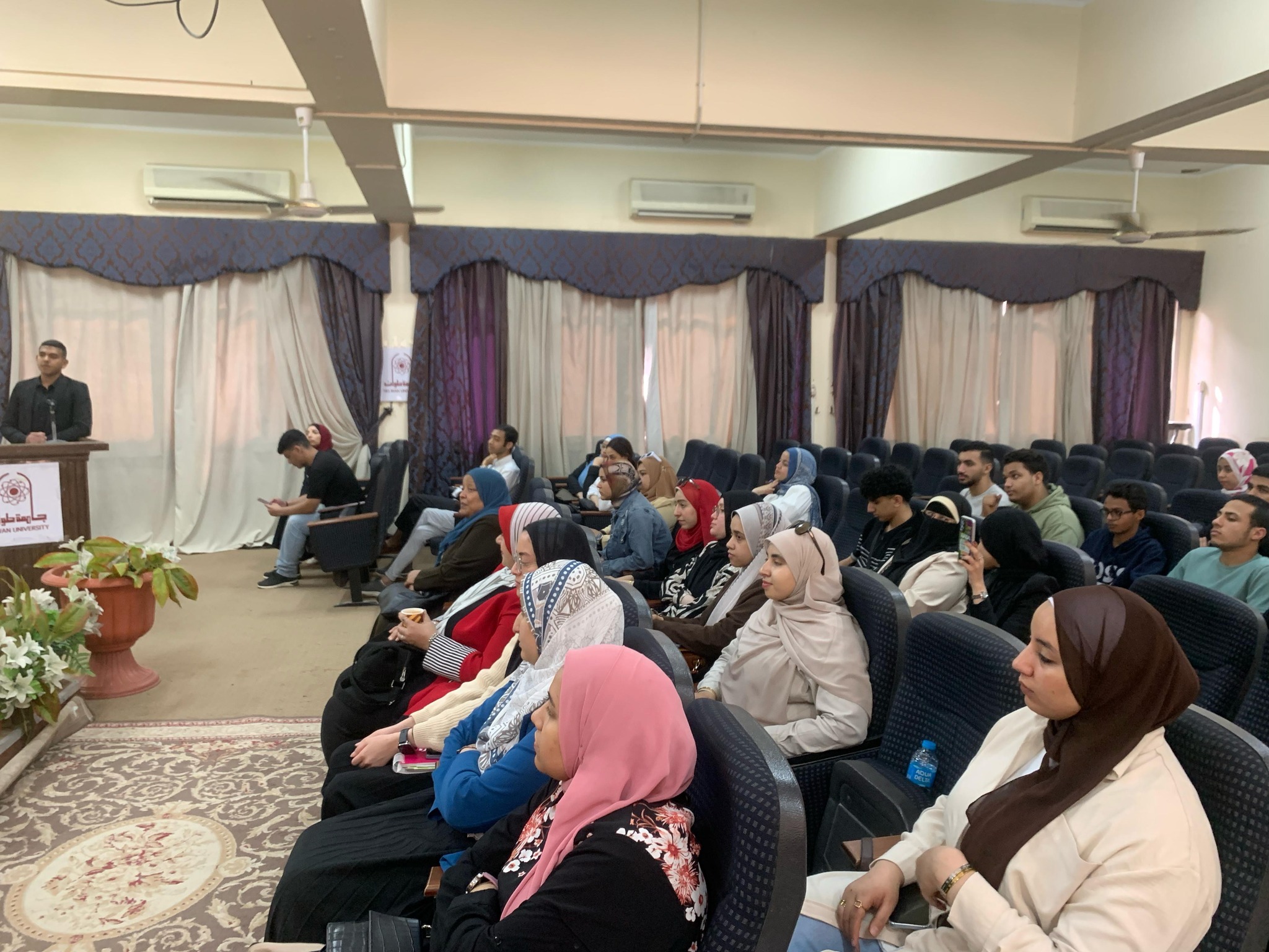 Prof. Ahmed Rawy delivered a speech in which he welcomed the attendees, praised the idea of organizing a student conference, and expressed great interest in providing continuous support for students and for academic departments in all their activities. He urged students to benefit from the diverse expertise and competencies of the faculty members.