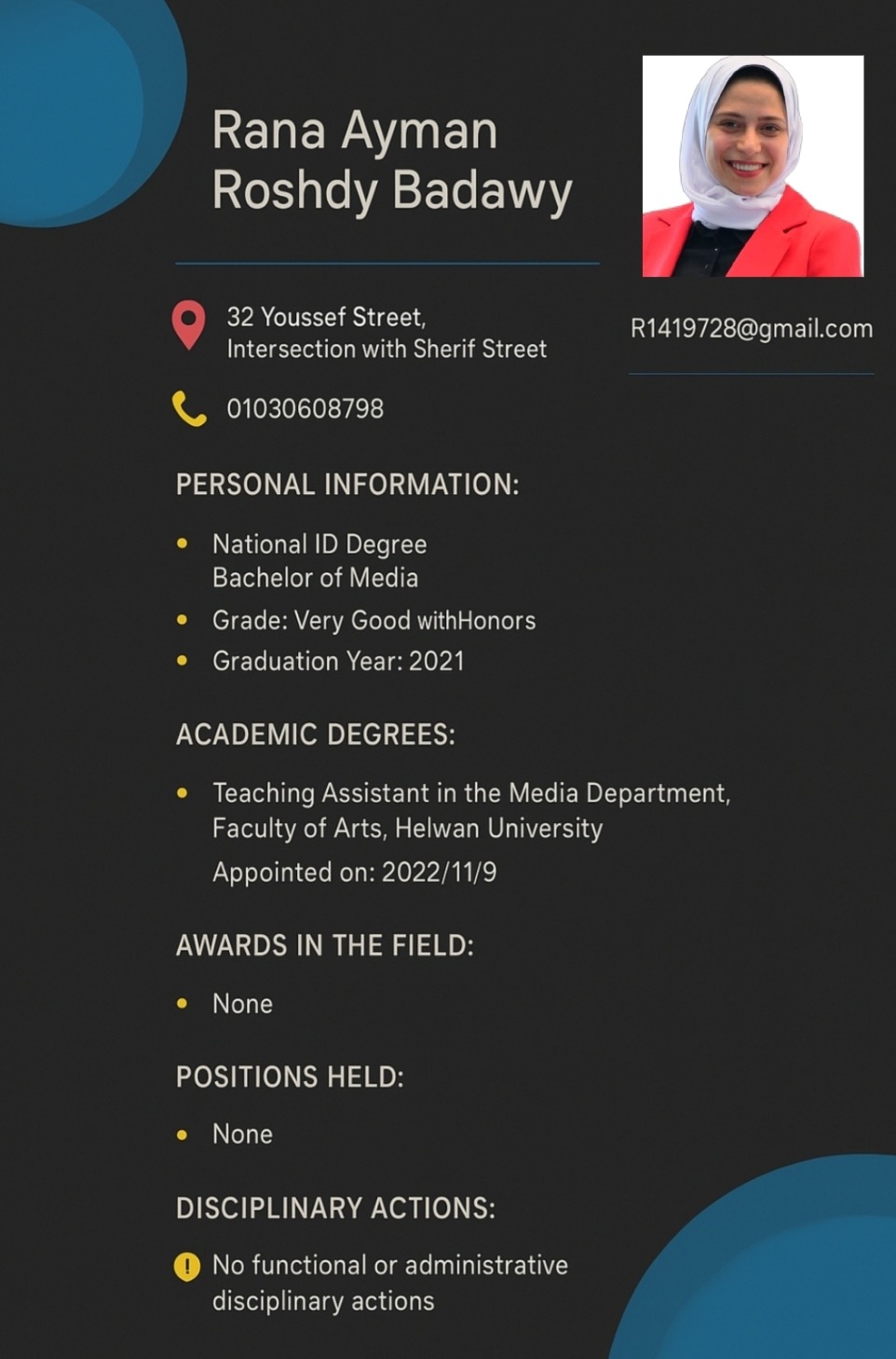 | 51. | Rana Ayman Roshdy Badawy | Teaching Assistant | C.V |